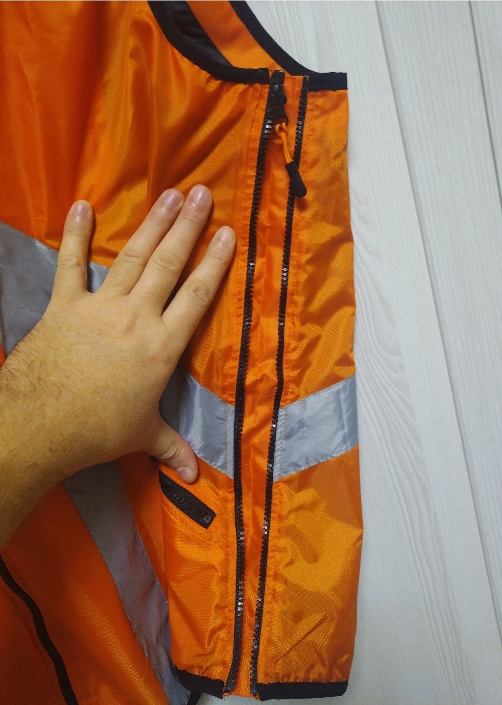 Жилет новый, индивидуального пошива, таких всего два. С капюшоном, материал оксфорд. На подкладке. Капюшон съемный, на молнии. Регалируемы объем, молнии все тракторные, пластик, пуллеры. Сропа под рацию и погон на обоих плечах. Цена 4.500 рублей.