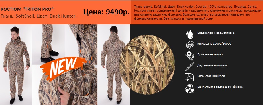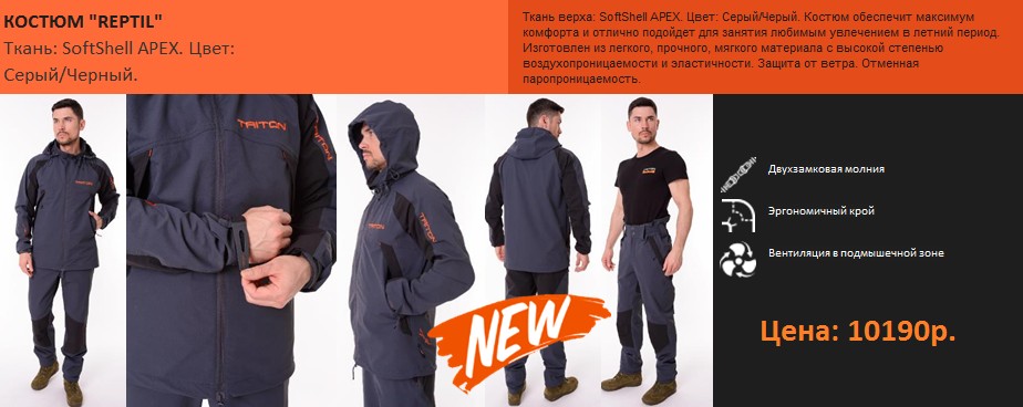 Итак, Уважаемые форумчане! Хочу представить вам одежду для охоты, рыбалки и активного отдыха, от нашумевшего «и не очень» производителя, компании «TRITON» Все представленные костюмы вы можете заказать тут же на форуме, через личные сообщения, или позвонив по номеру: 8-926-666-02-пять восемь. (с 10 до 20, пн-вс) Информацию по размерам и наличию необходимо уточнять заранее. Размеры идут соответственно размерной сетке, представленной ниже. Если вы ищете определенный костюм марки TRITON и не нашли его среди представленных, не отчаивайтесь и не стесняйтесь, позвоните и мы обязательно найдем его для вас. Доставка по Москве (до 10 км от МКАД)– БЕСПЛАТНО! Доставка по МО ( от 10 до 30 км от МКАД) – 300р.! Доставка в регионы после 100% предоплаты ТК или Почтой. Минимальная сумма заказа 1500р. При коллективном заказе от 3 костюмов действует скидка 10% На некоторые модели, относящиеся к прошедшему сезону, может действовать дополнительная скидка, уточняйте информацию. Более подробная информация будет появляться тут. Дополнительные фото можно заинтересовавшей вас модели, можно глянуть здесь.