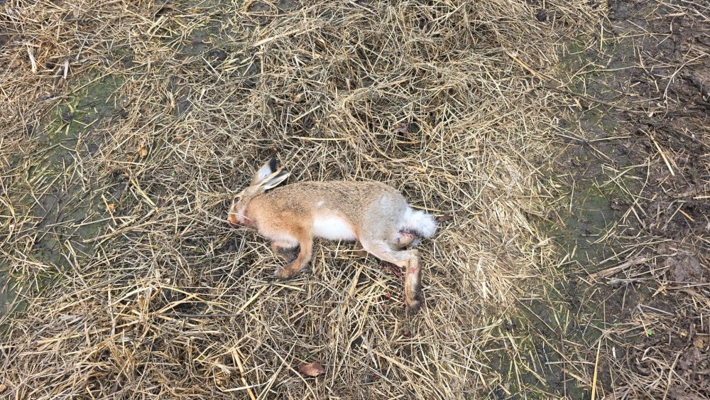 -10 и снег, проснулся поздно но решил пойти, хоть собаку проветрить. Первый поднялся в высокой траве, пропустив меня, заметил его метров 50 и оба выстрела мимо. Собака погнала но недолго, вернулась, след переметало на глазах, крови нет. Идём дальше. Следующее поле скошено в ноль а за ним снова поле и трава по колено но редкая и в принципе просматривается. Иду метров 30 от скошенного слева спереди вылетает заяц первым мимо ))) отпускаю на чистое поле , упреждение-выстрел заяц вильнул и побежал а собака следом, метров 150 и упал заяц.
