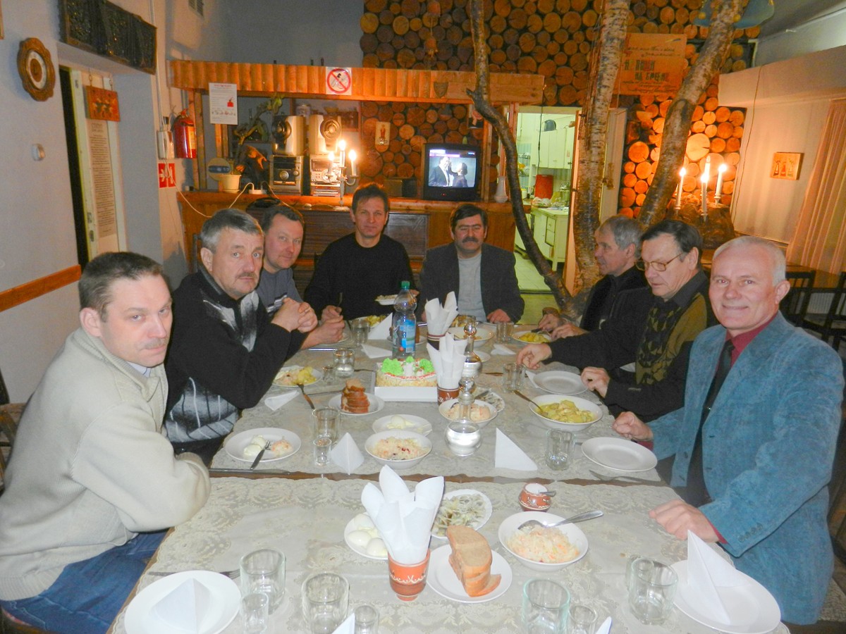 В Новом году встреча произошла, но уже без оружия, в том самом театральном кафе, где работали наши артисты-охотники, где компанию нам составили-запотевшие графинчики, тушеная лосятина и вкуснейший тортик в честь нашей дружной команды, с грустным зверем, по словам кулинаров-белым зайчиком, но опытных охотников не провести, мы знали что так выглядит самая настоящая чупакабра...