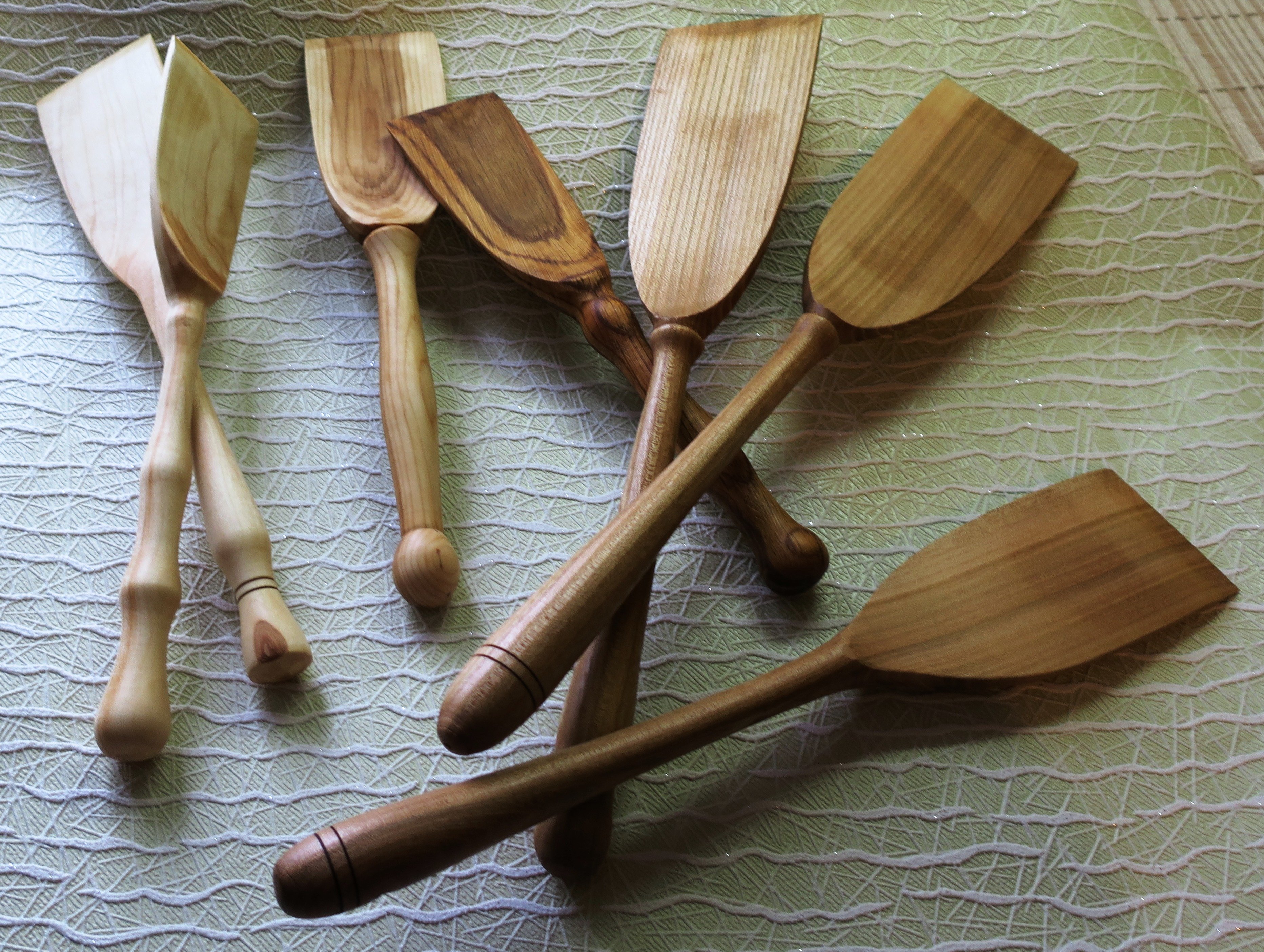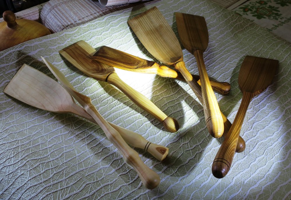 Лопатки, лопаты и лопатищи. Пара из клёна, рябина, дуб и три из вяза. Оладьи на сковороде ворочать и, не побоюсь этого слова, котлетки.