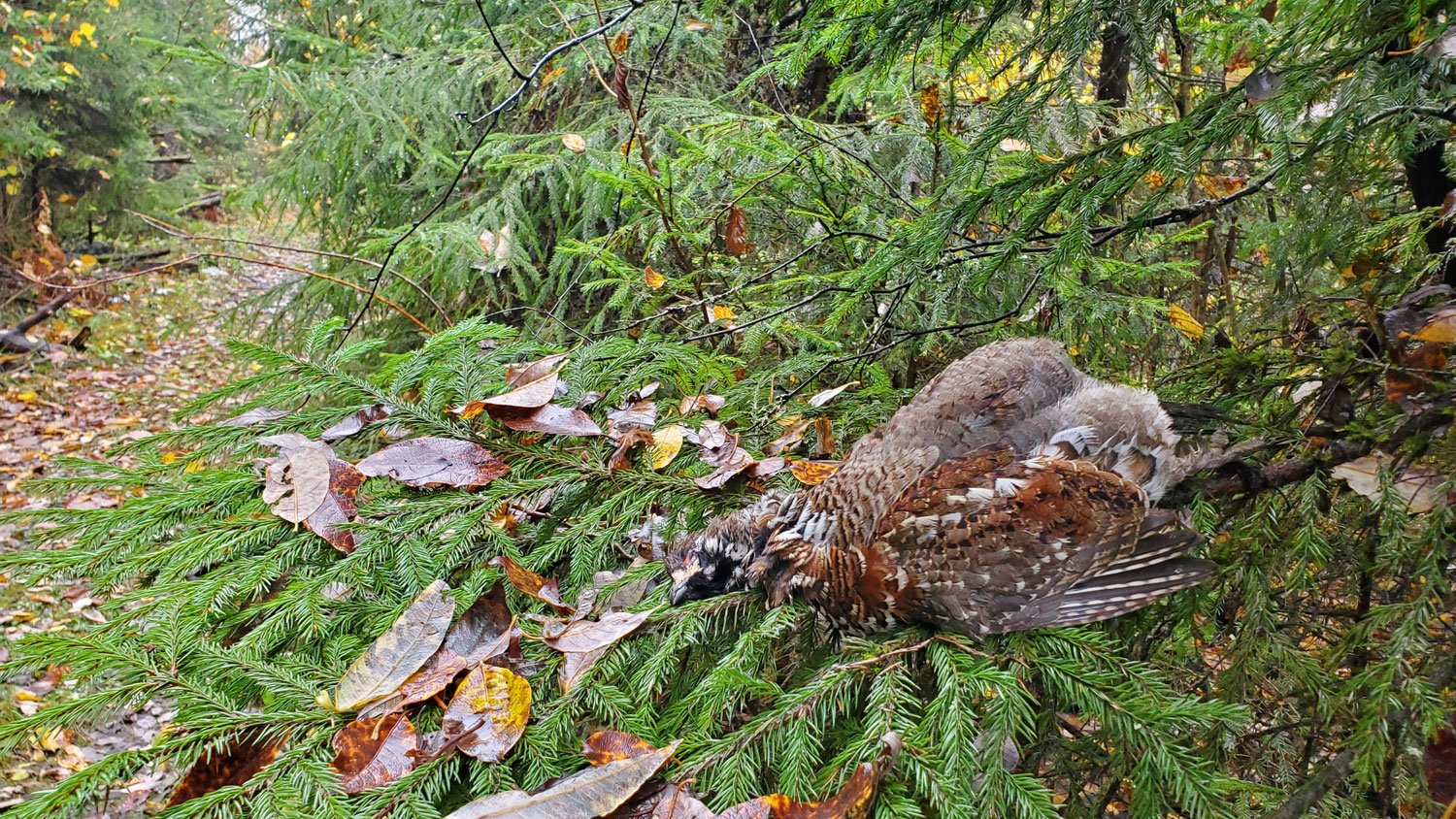 Сегодня удача улыбнулась! Как только зашел в лес (9-40), поднял, скорее всего, курочку. Она сидела на дороге и молча отлетела вперед и села вправо под молодые елки. Пока медленно подходил, начал петь рябчик в верхнем ярусе старых елок. Остановился, сделал один призыв курочкой - подлет и посадка на молодую густую елку у дороги левее меня (не видно, только на слух определил). Не двигаюсь, издаю еще раз самкой одиночный выдув - перелет на правую сторону дороги на выстрел. Практически сразу начался мелкий дождь минут на 20. Был до 11-00 в лесу, прошел около 1 км в полной тишине, время от времени шуршала падающая листва.
