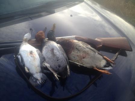Северная летит уже месяц как. Пролет как всегда растянут по времени, поэтому попасть на охоту, когда налет идет за налетом, большая удача. В каждом конкретном месте бывают дни, когда подходит большая партия уток с более северных регионов (в том числе с дальних, в том числе утки тех пород, которые в этом месте охоты не гнездятся) и тогда имеют место быть активные перелеты, налетов становится больше, хорошо работают чучела на открытой воде. А бывают дни, когда одна партия ушла, а другая не подошла. Тогда по охоте глушняк. Бывают и промежуточные варианты с жиденькой активностью. Не стоит забывать и про местных уток, некоторые из которых улетают очень поздно. В общем, чаще всего в это время мы наблюдаем картину с небольшой активностью уток. Но надежда есть всегда, да и у многих случались октябрьские выходы, когда лет был ну просто фантастический. В эти выходные, Шатурский район МО. В субботу утром пробивался к месту, ломая лед. Лежал небольшой снежок. Днем и снег, и лед растаяли. Утки мало, летает совсем слабенько, шансов меньше, чем в прошлые выходные. Думаю, основной пролет прошел, сейчас и впереди остатки. У меня был один хороший налет, результат на фото.