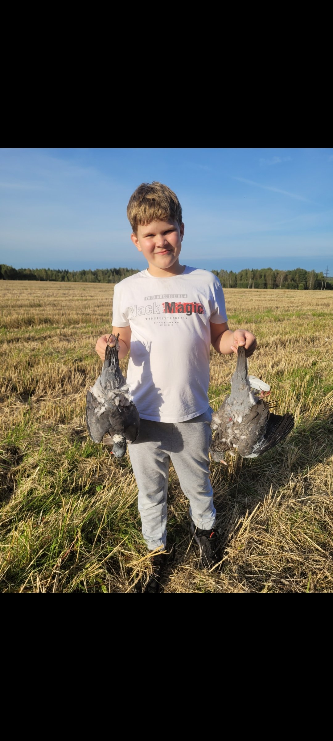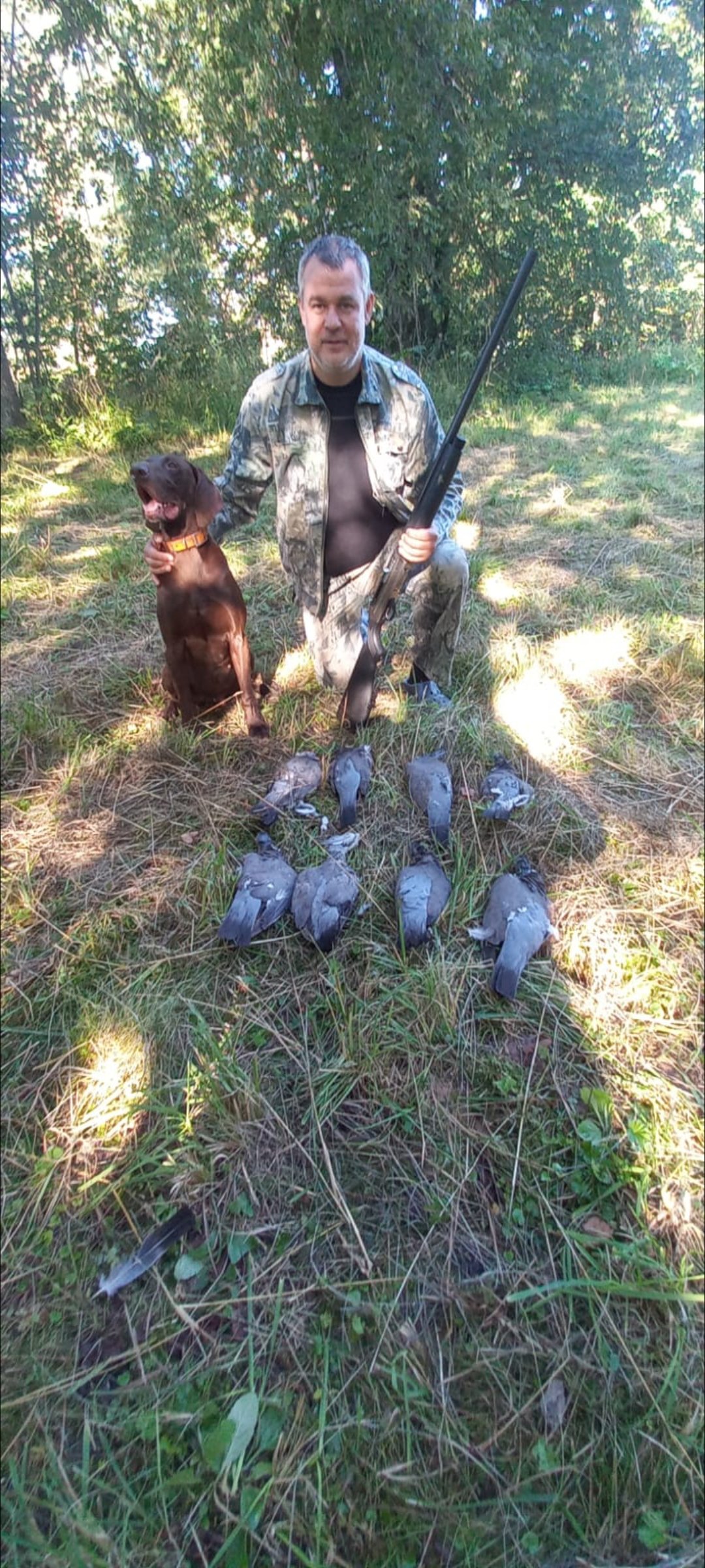 В этом году пшеницу начали убирать позже обычного. Поэтому на открытие с собаками и на общее открытие охотились на не скошенной пшенице. Норму взяли. 70% битых птичек без собачки было бы найти очень непросто. За первое открытие взял птичек как за весь прошлый сезон))) Потом был перерыв по вяхирю на утку, перепела, сурков, козлов и рыбалку. Вернулся к вяхирю только в сентябре. Он стал более осторожным и массовых скоплений как на открытие уже не нашли. Ещё пару раз съездили по схеме вечер-утро и ещё десяток упаковал в морозилку) Сын становится постоянным спутником на летних охота! Осенью учёбу не стали прогуливать)