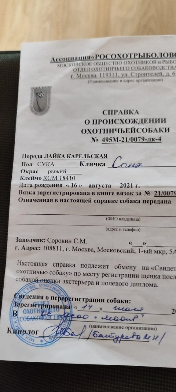 Здравствуйте, моя знакомая продает щенка Карельской лайки от своей собаки. Цена 20 т руб. Забирать из г.Череповец. День рождения 16.05.2023г. В помете было 4 щенка: две девочки и два мальчика. Остался один мальчик. Цена 20000 рублей. Забирать из города Череповец. Моего финансового интереса никакого нет. Все вопросы к хозяйке. Зовут Нина. Телефон для связи: 8 921 25 11 439. Её собака на Всероссийской выставке была первой в ринге в своей группе.