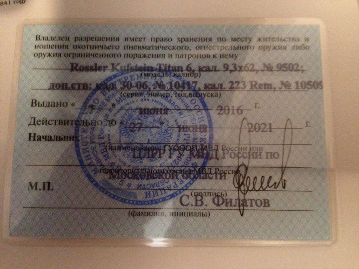 Продам карабин с двумя сменными стволами, Австрия, Roessler "Титан-6" Luxe, .30-06 Sprg.+.243 Win., шнеллер, стволы 560мм., двумя магазинами + оптика Hakko серии Super B, 2,5*10*42, d=30мм, прицельная марка 15D с подсветкой, установлена на стальные кольца(фирму не помню, Европа, очень похожи на Apel). Владею с 2004г., настрел: 30-06-около 50 выстрелов, пристрелка+3 охоты; 243-около 250 выстрелов, раз в год выезжал с ним. Относился бережно, перевозка в жёстком чехле, дефектов эксплуатации не имеет. Использовал только импортные патроны, преимущественно фирмы Norma, Winchester. Цена за комплект-109.999руб. Чехол, открывающиеся крышечки на оптику в подарок. Нахожусь в Москве (926)236-пять5-два2.