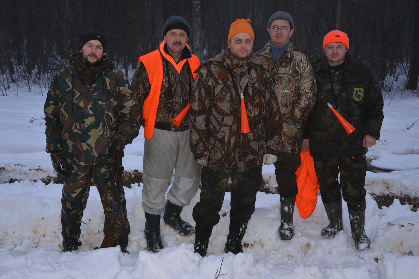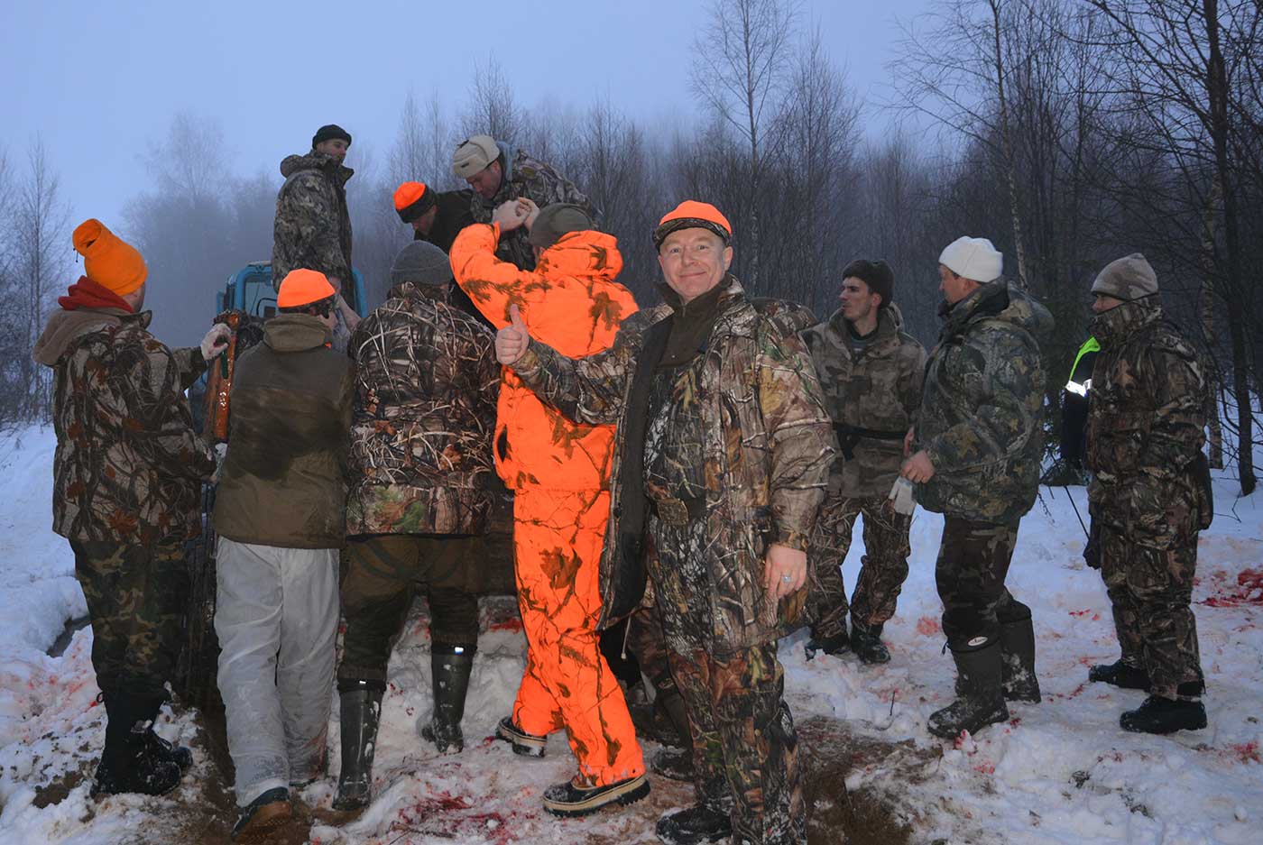H_A_N Posted December 23, 2013 #1 Report Share Posted December 23, 2013 В минувшие выходные наша форумная команда снова выезжала на охоту и как обычно в команду снова было включено несколько охотников с которыми ранее нам охотиться не доводилось (объявление о наборе команды было размещено тут: http://www.mooir.ru/forum/index.php?showtopic=10344 )Хозяйство в которое мы оправились на это раз для нас было новое, ранее наша команда там никогда не бывала. Предложение выехать туда на охоту поступило ко мне почти два месяца назад, но выезжать в новое место в Тверской области и охотиться по чернотропу я не рискнул. План проведения охоты долго обсуждался с представителями хозяйства и в конце концов была достигнута договоренность и охоту назначили на выходные, 21-22 декабря.Для подготовки охоты в четверг в хозяйство выехало 6 добровольцев из участников команды, с собой мы имели снегоход, мотособаку и пол багажника лыж. На месте нас встретили два представителя хозяйства, теплая база и ужин. Вечерние посиделки «за встречу!», обсуждение охоты и разглядывание карты затянулись далеко за полночь, но ни смотря на это к рассвету пятницы все было бодры, свежи и готовы выехать в угодья для рекогносцировки на месте.К сожалению хотя охоту мы и назначили на максимально снежный период, но погода на снова подвела. Всю неделю на улице был плюс, а в пятницу снова случился минус. Весь снег покрылся коркой льда, ходить по нему стало сложно, но создаваемый шум разносился на сотни метров вокруг, так что нам пришлось отказаться от идеи тихих обрезаний на лыжах и трое участников из разветгруппы остались на базе, а Миша, Андрей и я, вместе с представителями хозяйства оседлали три снегохода, собаку и выехали на разведку. Нам с Андреем не очень повезло, за пол дня мы пролезли почти 30 км по границам хозяйства и нашли только один свежий лосиный переход (правда мы еще нашли стадо кабанов голов в 30-40 и чуть ли не десяток волчих переходов), поэтому честно говоря на базу я возвращался не в самом радужном настроении. Но оказалось я расстраивался зря, другим участникам разветгруппы удалось найти несколько свежих переходов и составить определить участок угодий для охоты в выходные.К вечеру пятницы на базу начали подтягиваться остальные участники команды и в 8-30 субботы наша команды вышла на построение в полном составе.Погода в субботу снова преподнесла нам не самый приятный сюрприз, термометр опять начал показывать плюсовые значения и пошел мокрый снег. Первый загон провести за пару часов, как результат Сергей «Тундра» добыл взрослого лося (лось вышел между ним и Андреем «Аргон», но двигался он на Сергея и Андрей разумно решил не жадничать, три выстрела Сергея привели к трем попаданиям и таким повреждениям, что в команде снова пошли разговоры про запрет не только калибров 9мм и выше, но и всего что превышает 30-06 по энергии, Сергей стрелял из 300WM), а почти все загонщики попроваливались в ручьи и болота.К месту проведения второго загона все дошли уже мокрые и подуставшие. К сожалению из за незнания угодий, болотистой местности и не промерзшей земли додавить лосей на номера так и не удалось. Лоси хотя и подошли на слышимое расстояние к номерам, но предпочти пройти вдоль них. После выхода загонщиков мы предприняли «жест отчаянья», заменив загонщиков и сняв часть номеров попытались нагнать уходящих лосей и завернуть их на дальнюю линию ст