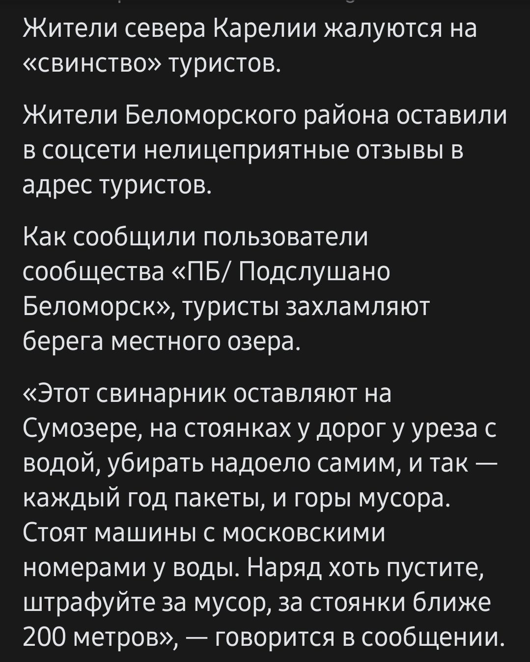 Дядя_Фёдор Posted August 4, 2023 #4 Report Share Posted August 4, 2023 21 час назад, Виталий Локтюшин сказал: Вы сударь ошибаетесь, путевки лицензии в Сорокский мне в Вирме давали. В Вирме???? Ну, раньше местным высылали документы и они брали путёвку в Белике с тройной наценкой, а по прибытию вручали неведающим. Вот смотрите,взял свежее сообщения с их паблика. Дальше Вирмы Сумозеро,там до Сорокского недалеко. Так вот все грехи валят на москвичей и просят шкурить машины с московскими номерами. Скажу так- охамели там вкрай,вот пусть немного им доход урежется с туристов,посидят на голодном пайке,глядишь гостеприимству научатся. Дядя_Фёдор Quote Link to post Share on other sites More sharing options...