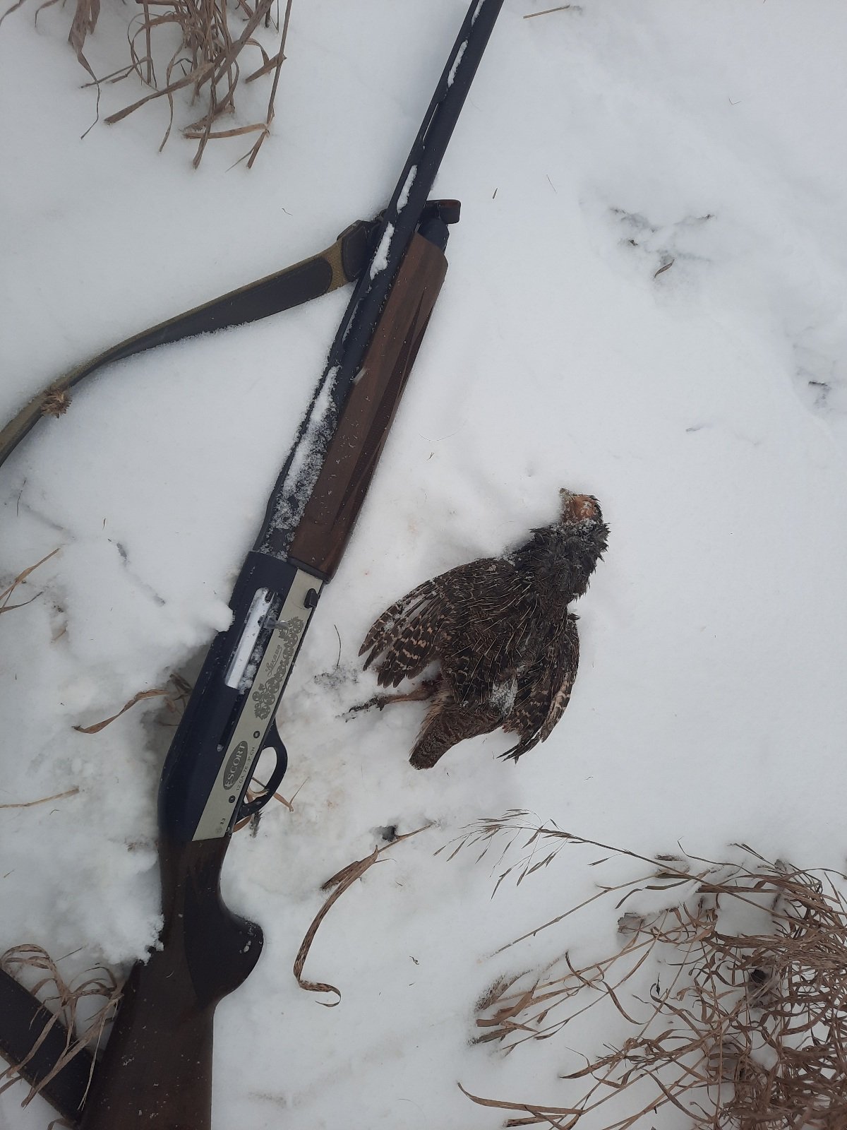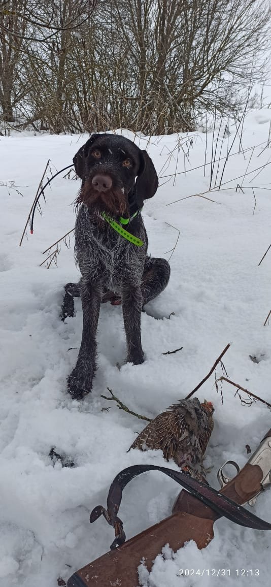 Popular Post wald2012 Posted December 8, 2024 Author Popular Post #80 Report Share Posted December 8, 2024 (edited) Приветствую друзья!!! Сегодня образовался выходной в «загонных охотах», решили с питомцем воспользоваться и погулять по угодьям. Снег запорошил поля накрыв белым одеялом, легкий мороз сковал ручьи и озера, оставив проталины. Давно Рей не выбирался в «поле», засиделся в вольере. Наматывал круги вокруг меня и держал нос по ветру обнюхивая каждый куст. Снег не глубокий, передвигаться легко, ведем поиск куропатки. Рей находит куст со свежими следами куропатки, натоптали сильно, видимо большая семья сидела. След свежий надо быть внимательней, Рей замирает, я понимаю, стойка, начинаю приближаться. Взлетело порядка трех десятков особей. Куропатка поднималась впереди, справа, слева, неожиданно много, придя в себя успел сделать выстрел... Попал, метров 20 упала, ищем трофей. Искали минут 10, подранок забился в траву, под снег, Рей добрал... МОЛОДЕЦ!!! Охота состоялась благодаря Рею, все довольны, питомец в двойне, погулял и добыл, едем домой. Edited December 8, 2024 by wald2012 12 wald2012 Quote Link to post Share on other sites More sharing options...
