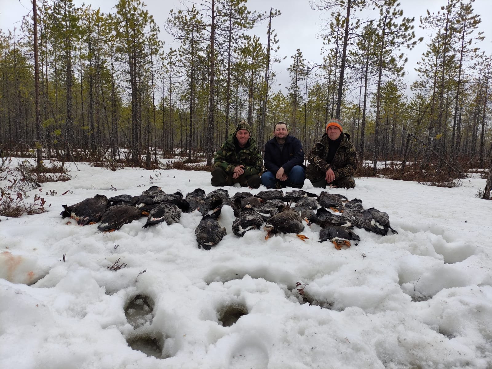 livi63 Posted May 26, 2024 Author #71 Report Share Posted May 26, 2024 Во второй половине дня мне позвонили охотники с ВИП-группы, и сообщили, что хотели бы выехать досрочно. Гости подстрелили 20 гусей на двоих, и больше им просто не было нужно. Поэтому охоту они закончили. Когда я позднее приехал их вывозить, охотники сказали, что пролет был отличный, и при желании они легко могли бы настрелять более 50 гусей, но хранить их негде. Далее все чаще в стаях стала появляться казарка, а в последний день охоты она уже преобладала. В другой группе второго заезда охотились опытные охотники-охотоведы. И хотя опыта охоты именно на гуся у них до этого не было, они добыли 33 гуся. Сказалось умение стрелять, а опыт по гусю быстро приобретается. Моя личная добыча во втором заезде составила 40 гусей. 1 livi63 Quote Link to post Share on other sites More sharing options...