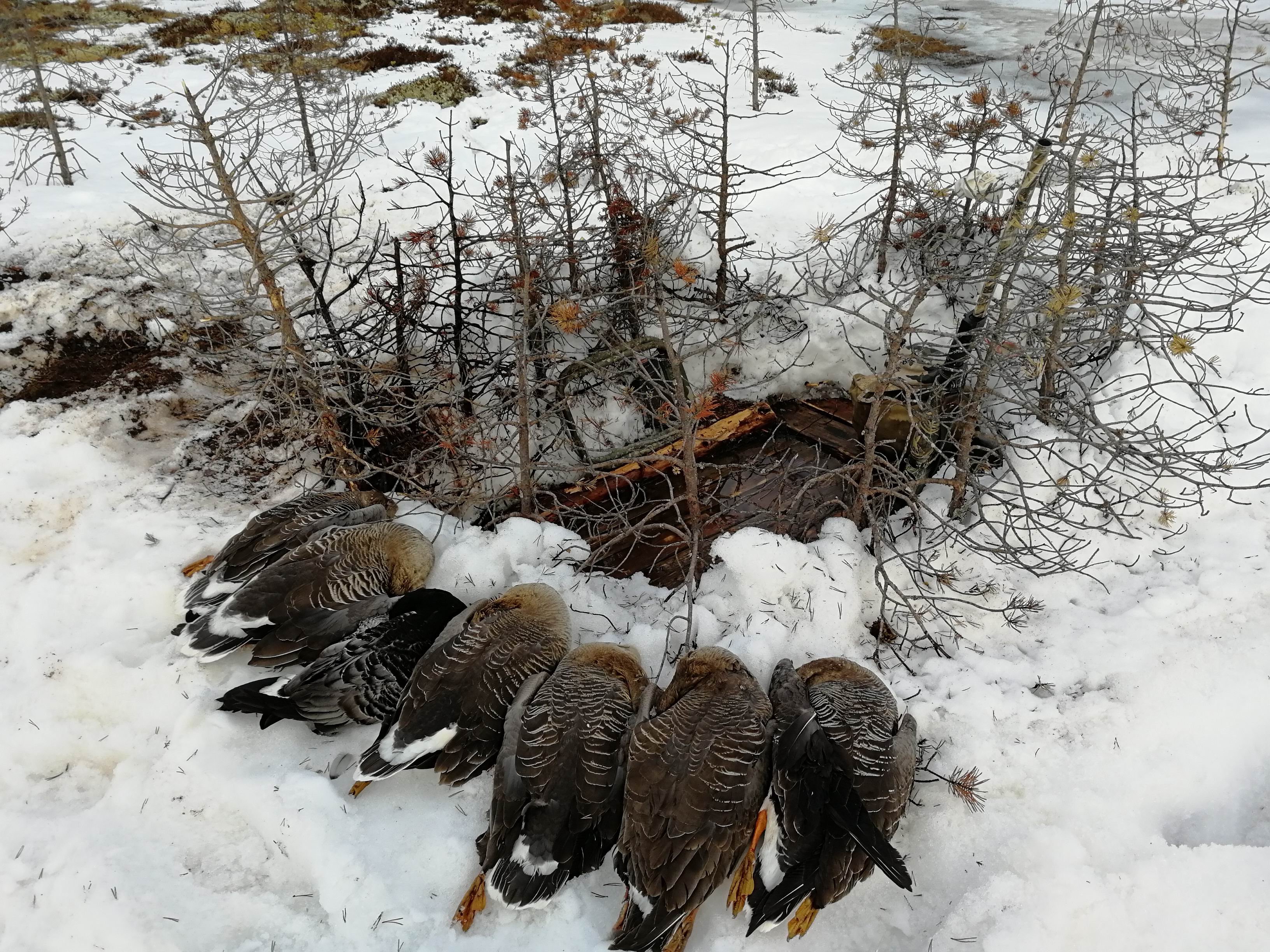 livi63 Posted May 26, 2024 Author #70 Report Share Posted May 26, 2024 (edited) На следующий день, 14 мая, пролет возобновился с прежней силой. Хоть гусь в этот день пошел и выше, но снижался он уже охотнее, налетов стало больше. Появилась казарка. За день я насчитал 82 стаи, взял 18 гусей. Обратите внимание, насколько "жидкий" у меня скрадок! Я даже свежих сосенок в этом году не стал добавлять, хотя они и были подвезены еще на снегоходе. Считаю густой скрадок вредным, он сильнее бросается в глаза. Edited May 26, 2024 by livi63 2 livi63 Quote Link to post Share on other sites More sharing options...