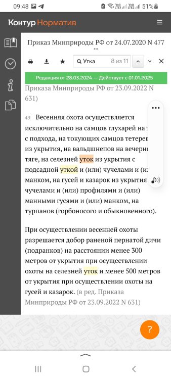 Сергей_П. Posted April 6, 2025 #9 Report Share Posted April 6, 2025 Только что, Иван12001 сказал: А в распоряжении МООИР 2.1. Охоту проводить разрешенными способами: ...... - на селезней уток с использованием живых подсадных (манных) уток с чучелами и (или) манком из искусственного укрытия; Да нифига непонятно, на самом деле на что ориентироваться) Много неоднозначных моментов. Link to post Share on other sites More sharing options...